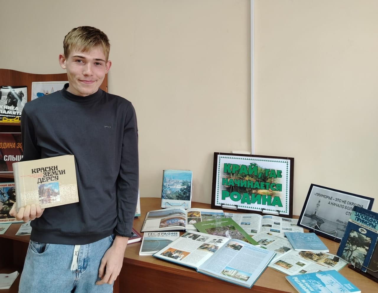 В душе у каждого человека живет любовь к родному краю, к своей малой Родине, где жили его предки, где живет он сам. И чтобы эта любовь не угасла, в библиотеке оформлена информационная выставка «Край, где начинается Родина». На выставке представлены книги о различных достижениях Приморского края в различных сферах — политике, экономике, науке, а также о выдающихся людях, которые помогли этому свершиться.