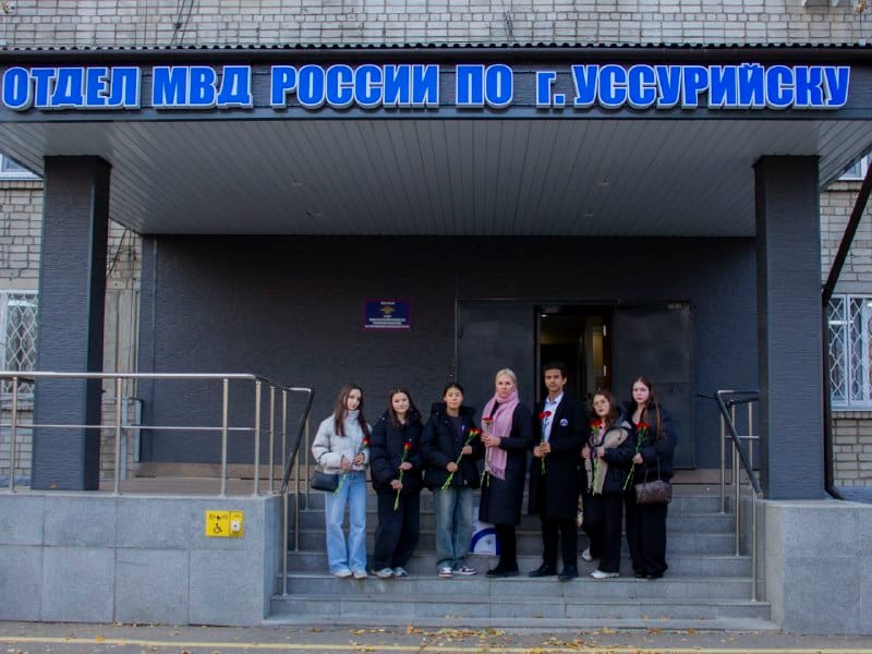 Волонтеры ДВТК возложили цветы к мемориалу «Аллея памяти сотрудникам Уссурийской милиции погибшим во имя живых».