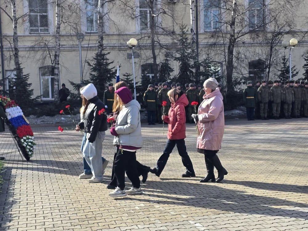 В этот день студенты нашего колледжа приняли участие в торжественном мероприятии, посвящённом возложению цветов к памятнику на Аллее Славы и почтили минутой молчания защитников Отечества.