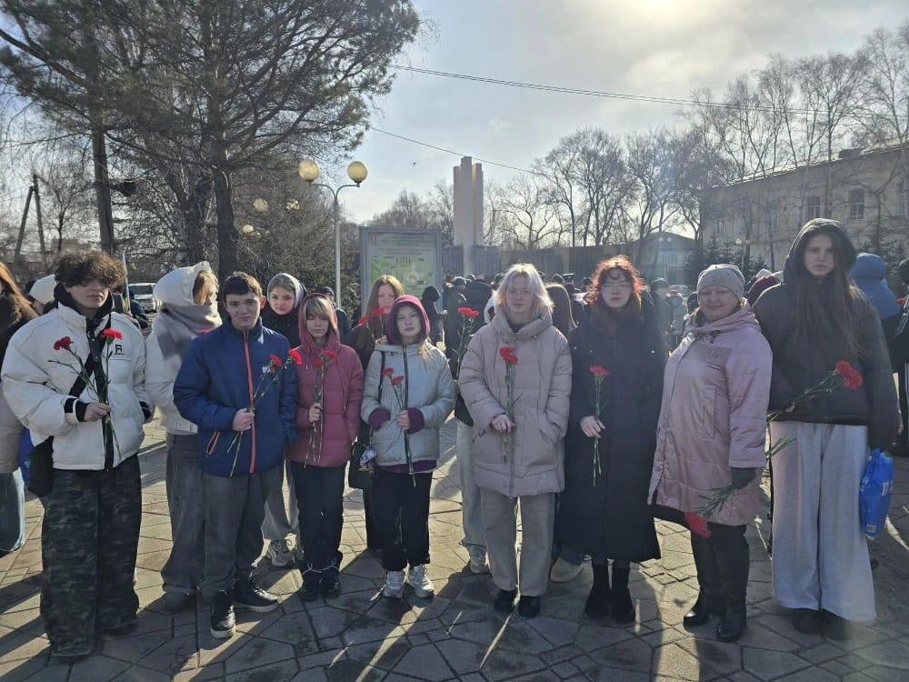 К подножию мемориала легли красные гвоздики — символ мужества и бессмертной памяти о тех, кто отдал жизнь за Родину. Мы помним о каждом подвиге.
