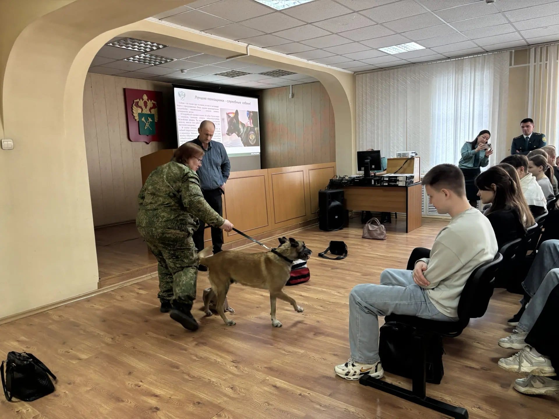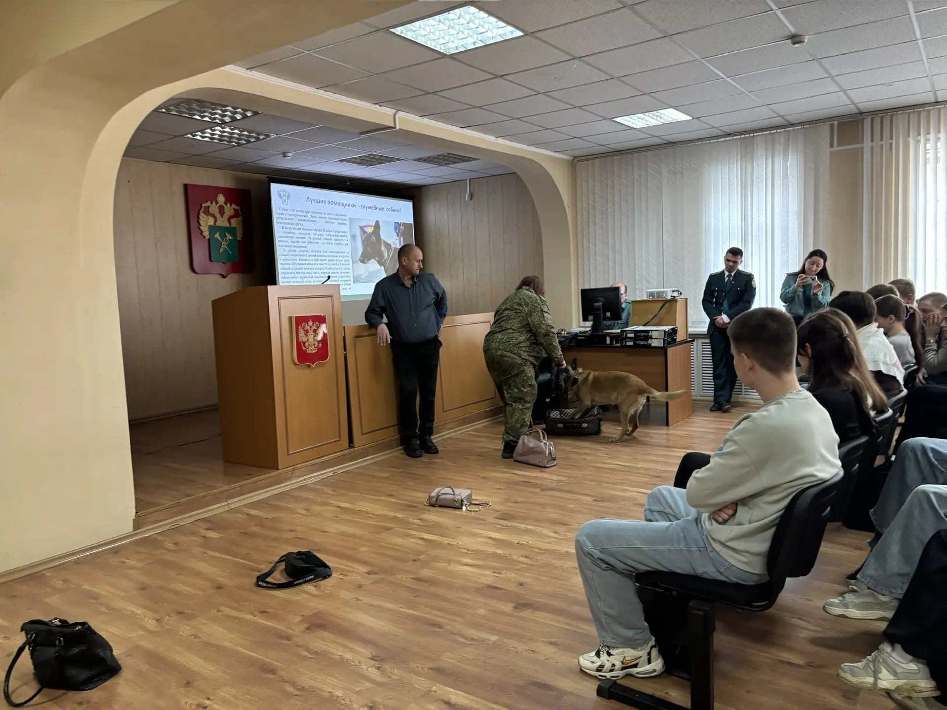 Особый интерес вызвала демонстрация работы кинологов: ребята увидели, как проходят тренировки по поиску наркотических средств и общерозыскному профилю.