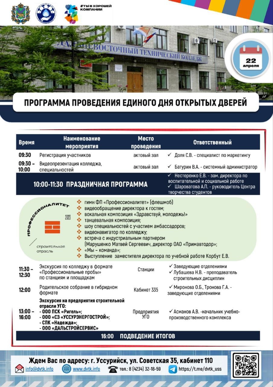 ❗️❗️❗️КГА ПОУ "ДВТК" приглашает учащихся 9-11 классов школ Уссурийского городского округа и Приморского края на единый день открытых дверей ❗️❗️❗️