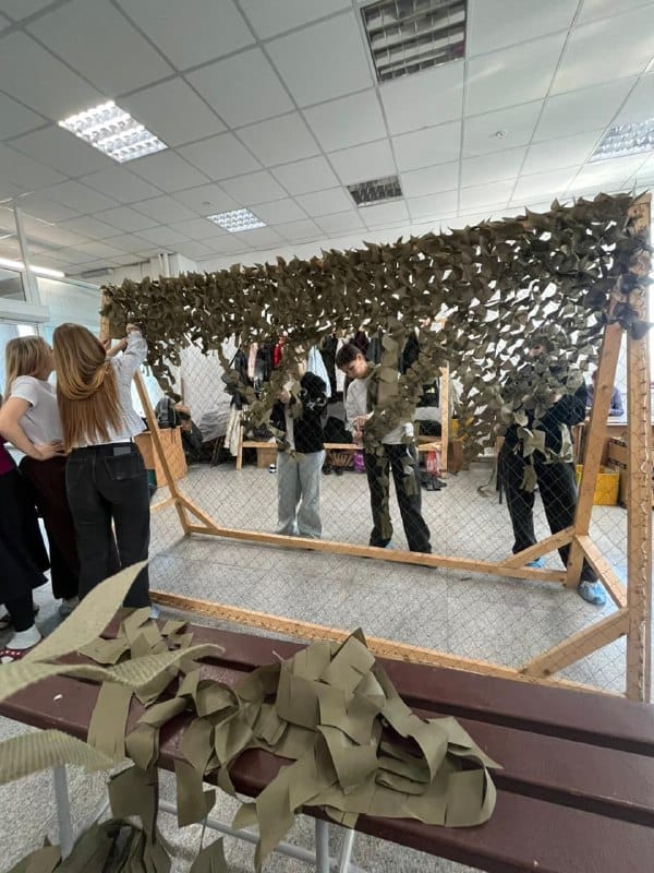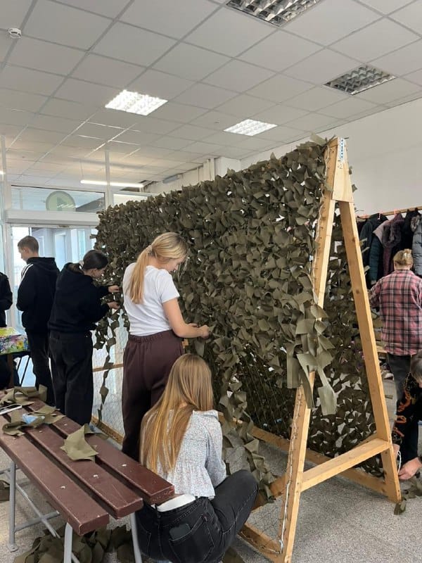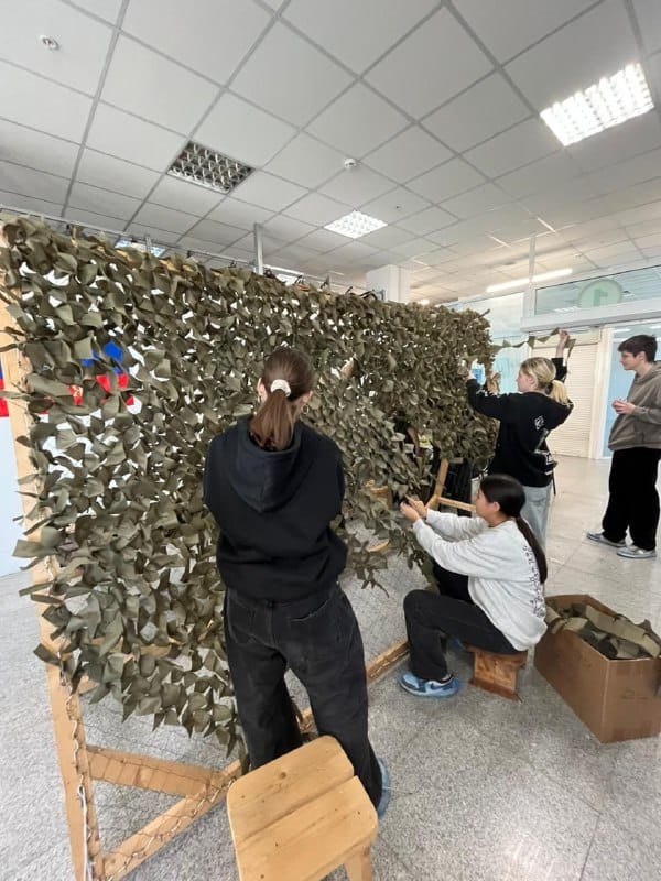 Ребята-волонтеры колледжа еженедельно принимают активное участие в плетении маскировочных сетей для бойцов СВО.