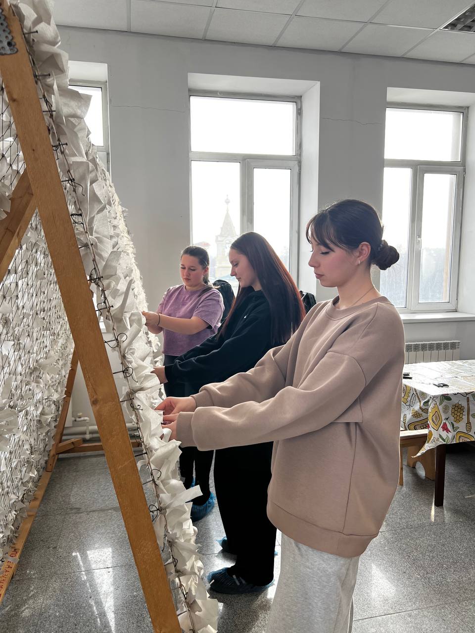 Студенты-волонтёры ДВТК принимают активное участие в плетении маскировочных сетей для бойцов СВО.