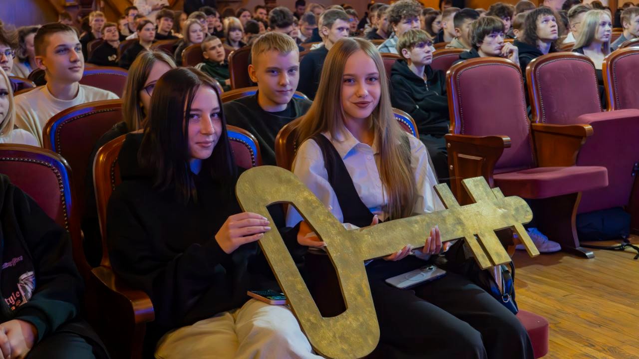 Сегодня на сцене актового зала было всё: творческие номера — вокал и хореография, театральное искусство, чувственные напутствия кураторов и старшекурсников, клятва первокурсников, загадки и шуточные пожелания от ведущих Льва и Евы.