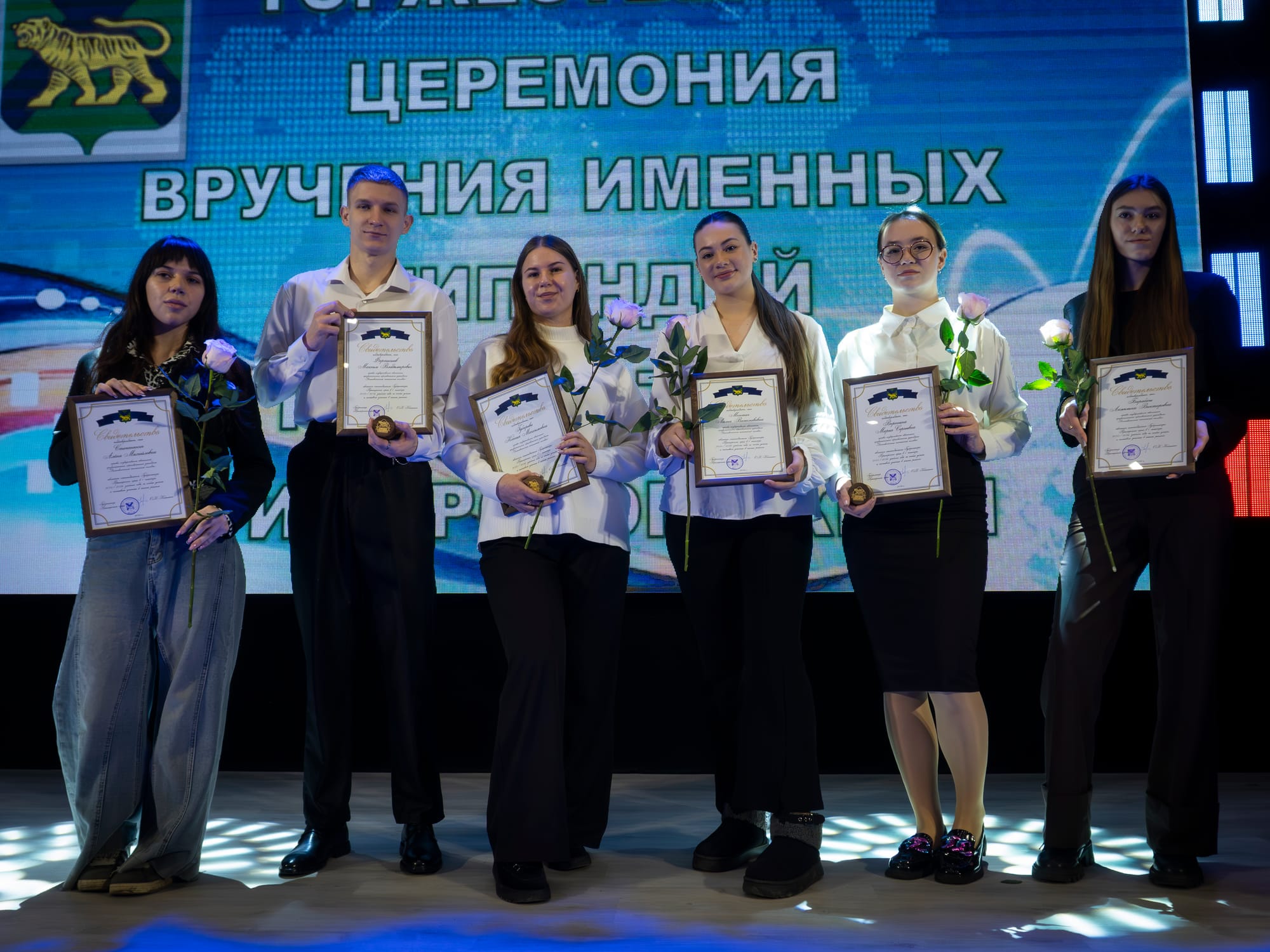 🏆 Нашим студентам Фартышеву Максиму, Ворониной Марии, Губаревой Ксении, Монтач Лилии, Барабаш Анжелике, Степаненко Алёне были вручены именные значки стипендиатов и благодарности губернатора Кожемяко О.Н.