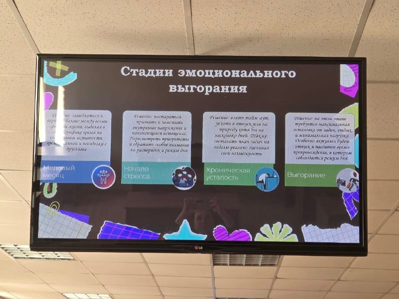 На практике преподаватели проанализировали распределение времени и энергии на разные сферы жизни, поведение в кризисных ситуациях, обучились эффективным техникам восстановления эмоционального баланса, формированию устойчивых психологических ресурсов для повышения стрессоустойчивости. В конце каждый преподаватель получил сладкий подарок с позитивной аффирмацией.