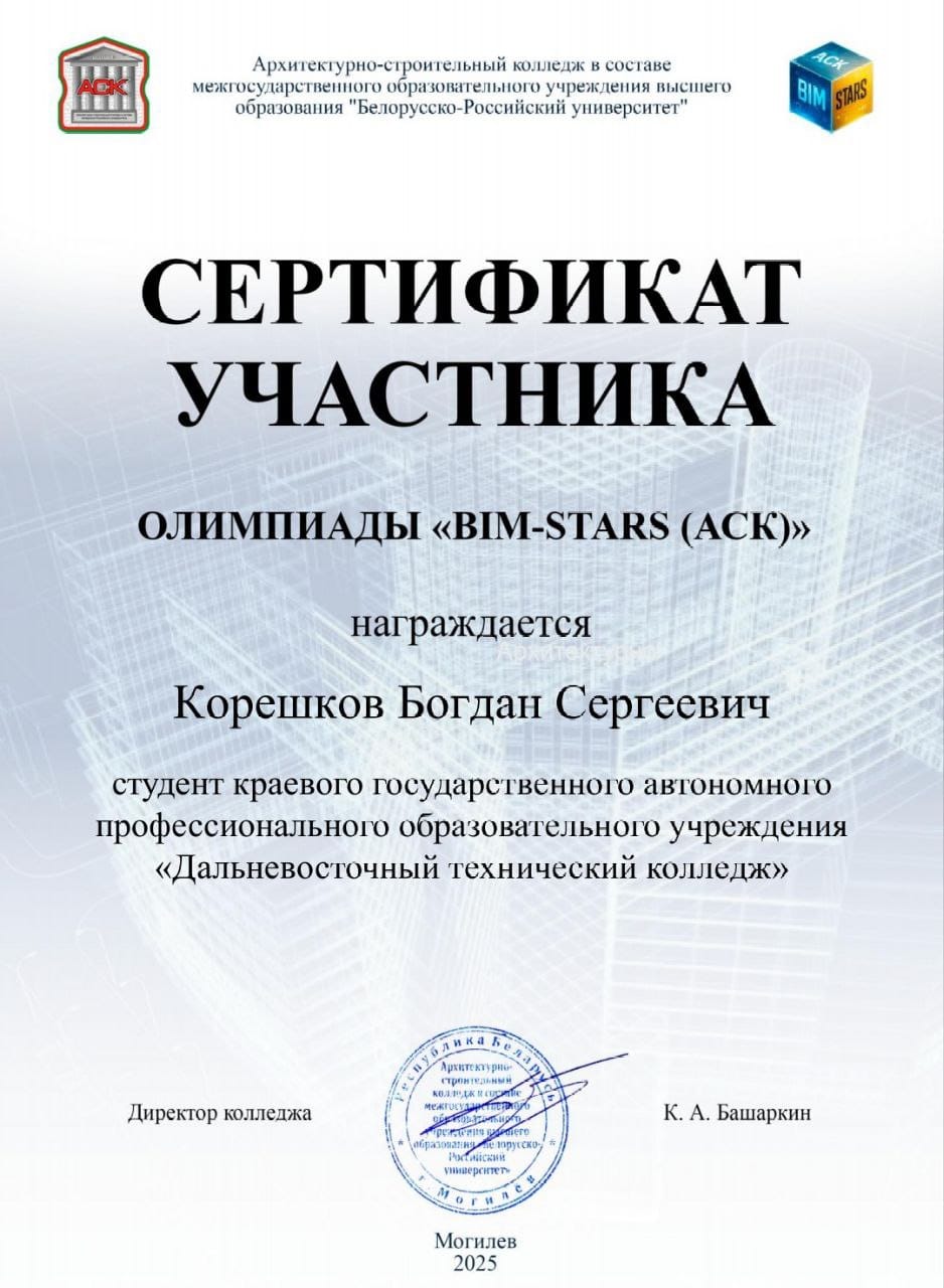 приняли участие в международной олимпиаде «BIM-STARS (АСК)», проводимой Гомельским архитектурно-строительным колледжем в составе межгосударственного образовательного учреждения высшего образования «Белорусско-Российский университет».