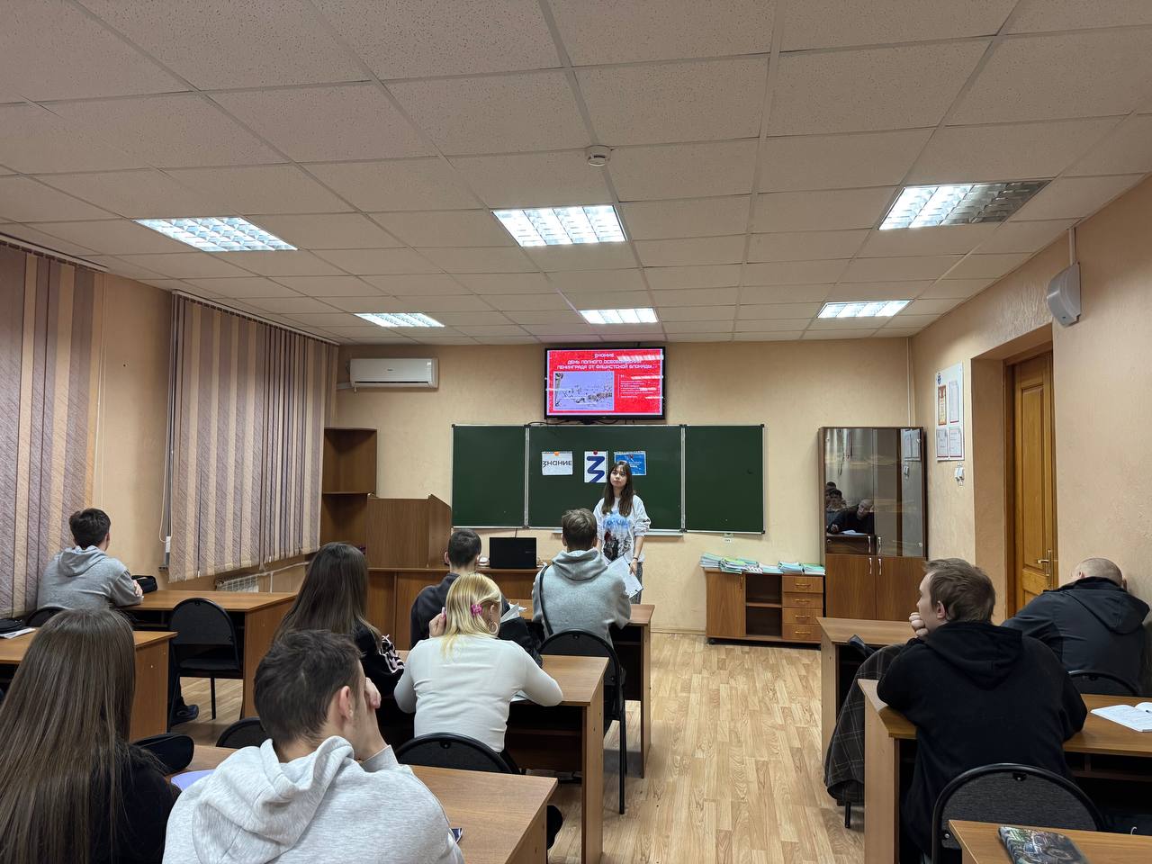 🤝 Волонтёры Победы посетили группы первого и второго курсов, проведя исторические пятиминутки, посвящённые Дню полного снятия блокады Ленинграда.