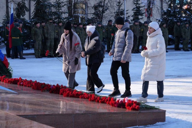 На площади Победы прошла торжественная церемония, объединившая представителей разных поколений и социальных групп города. Среди участников памятного мероприятия были руководители органов местного самоуправления, депутаты городской Думы, военнослужащие, школьники, студенты, активисты, жители и гости города.