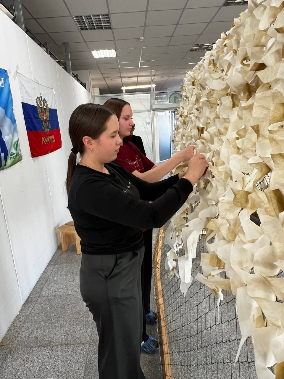 Готовые маскировочные сети, созданные руками студентов, передаются в зону СВО, позволяют бойцам надёжнее укрыть позиции и сохранить жизни.