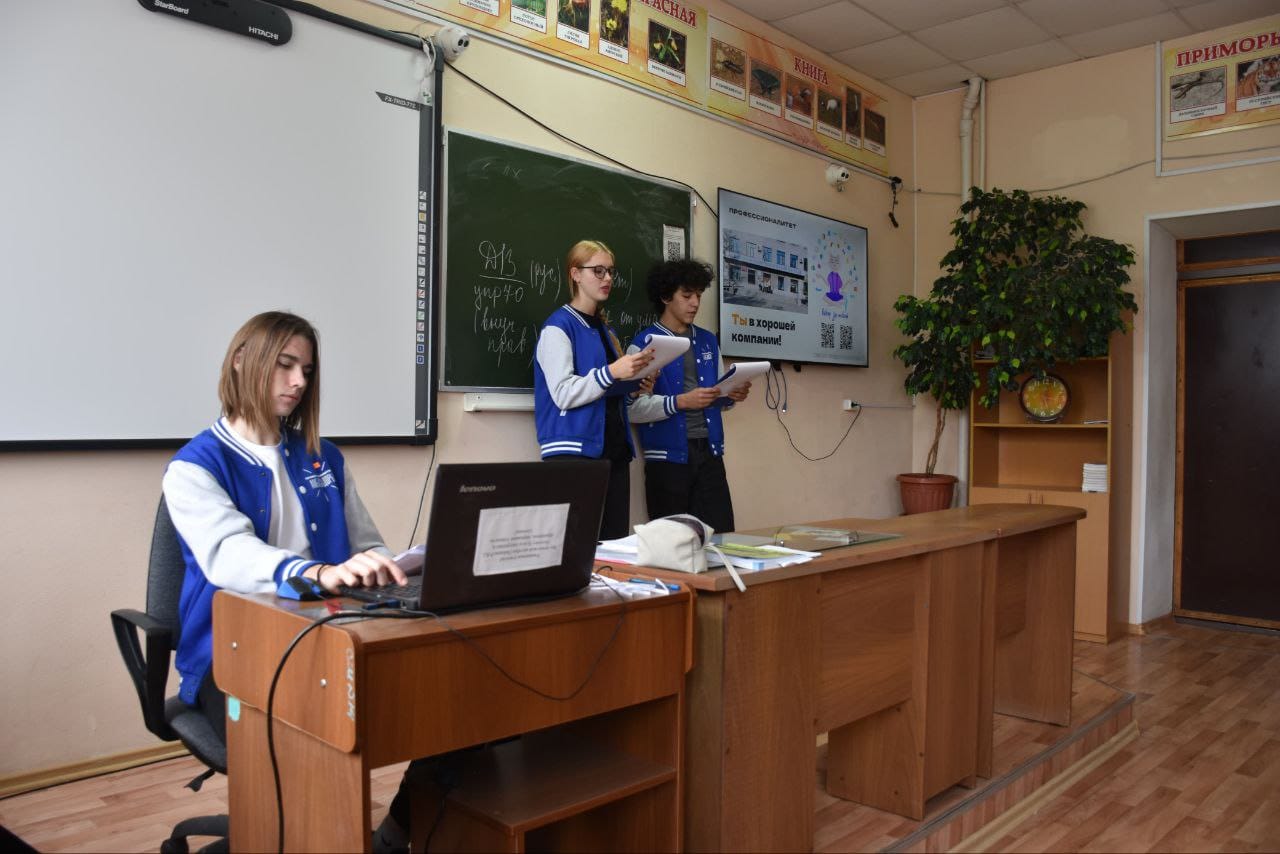 16 октября в МБОУ СОШ 14 города Уссурийска среди учащихся 9 класса (30 человек) Амбассадоры Профессионалитета провели Всероссийский классный час "Профессионалитет: Ты в хорошей компании".
