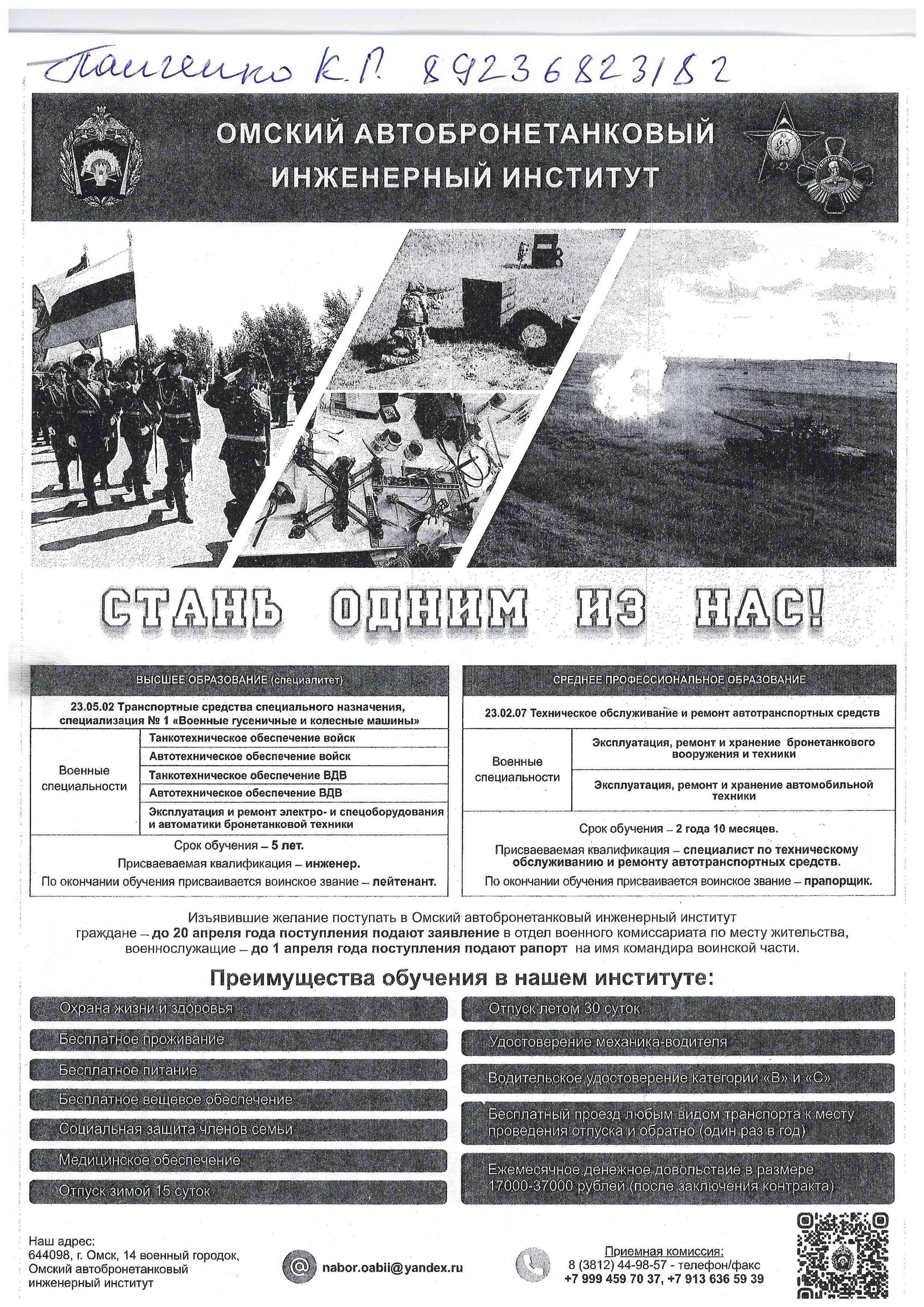Просмотр вакансий ВЗАИМОДЕЙСТВИЕ С ВУЗАМИ ДЛЯ ДАЛЬНЕЙШЕГО ОБУЧЕНИЯ ВЫПУСКНИКОВ КОЛЛЕДЖА В 2025 году 1.Военно-инженерный институт при Сибирском Федеральном университете. 2. Федеральное Государственное казенное военное образовательное учреждение высшего образования Михайловская военная артиллерийская академия Министерства обороны РФ. 3. Омский автобронетанковый инженерный институт г. Омск. 4. Приморский Государственный аграрно-техноло